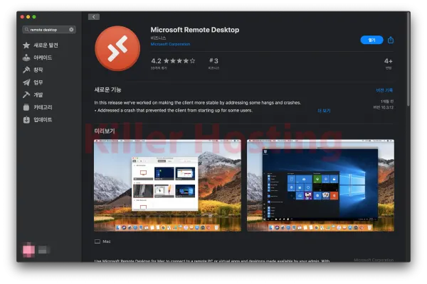 App Store 에서 Microsoft Remote Desktop 프로그램을 설치합니다.