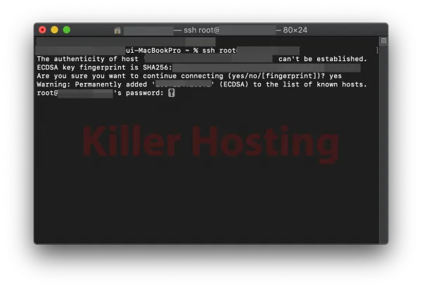 터미널 화면에 "ssh 사용자이름@서버IP또는도메인" 을 입력합니다. ex:)) root@1.1.1.1
